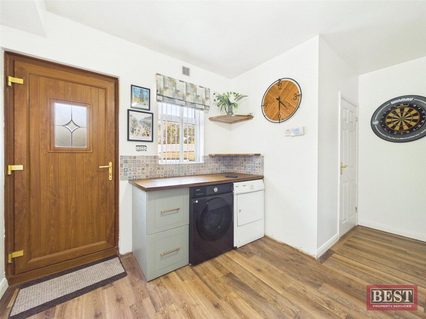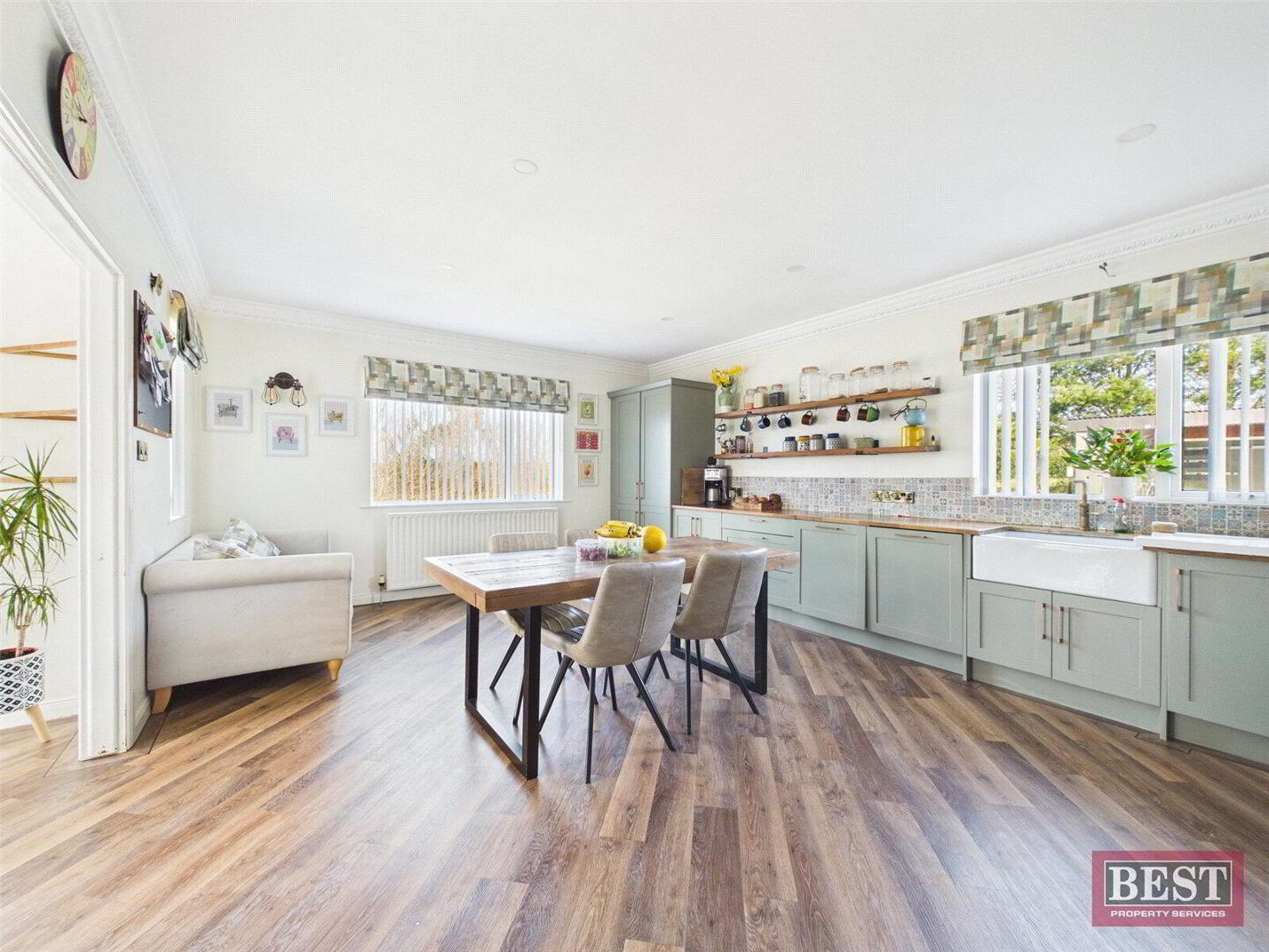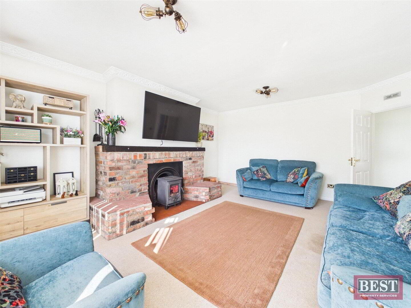 Upon entering, you are welcomed by a bright and welcoming entrance hallway which immediately sets the tone for the spacious accommodation throughout. The lounge is well-proportioned and filled with natural light, creating a warm and inviting space for relaxation and features a wood burning stove with brick surround. A second reception room, currently used as a living room/playroom, offers excellent flexibility for family life.