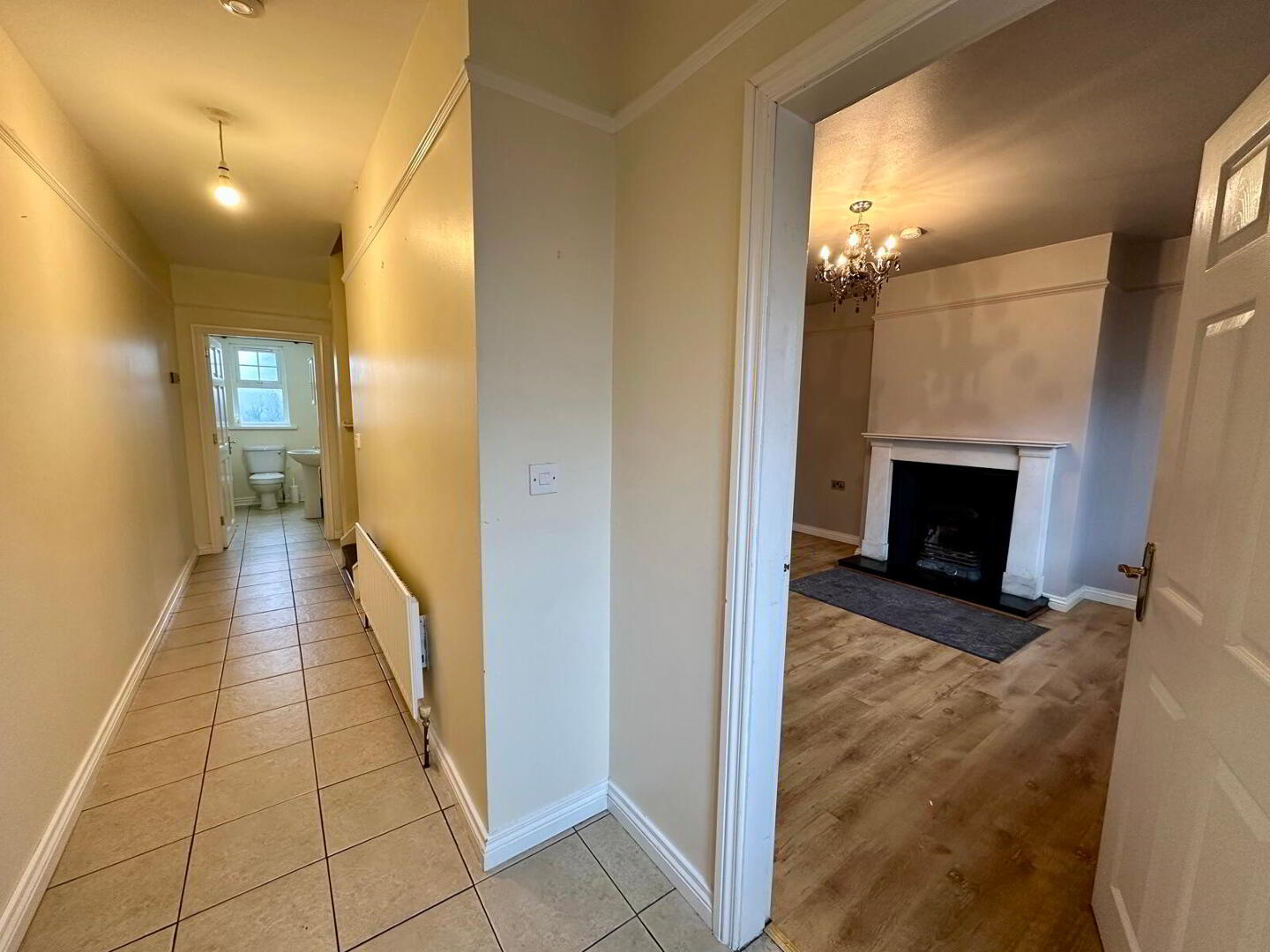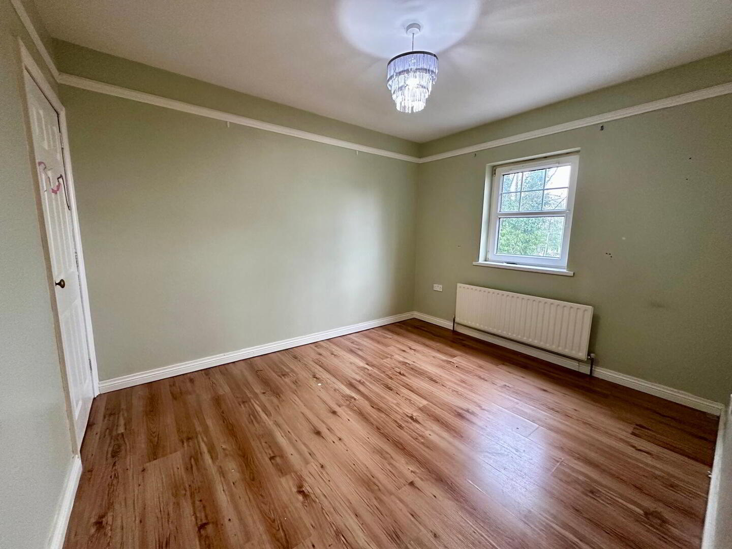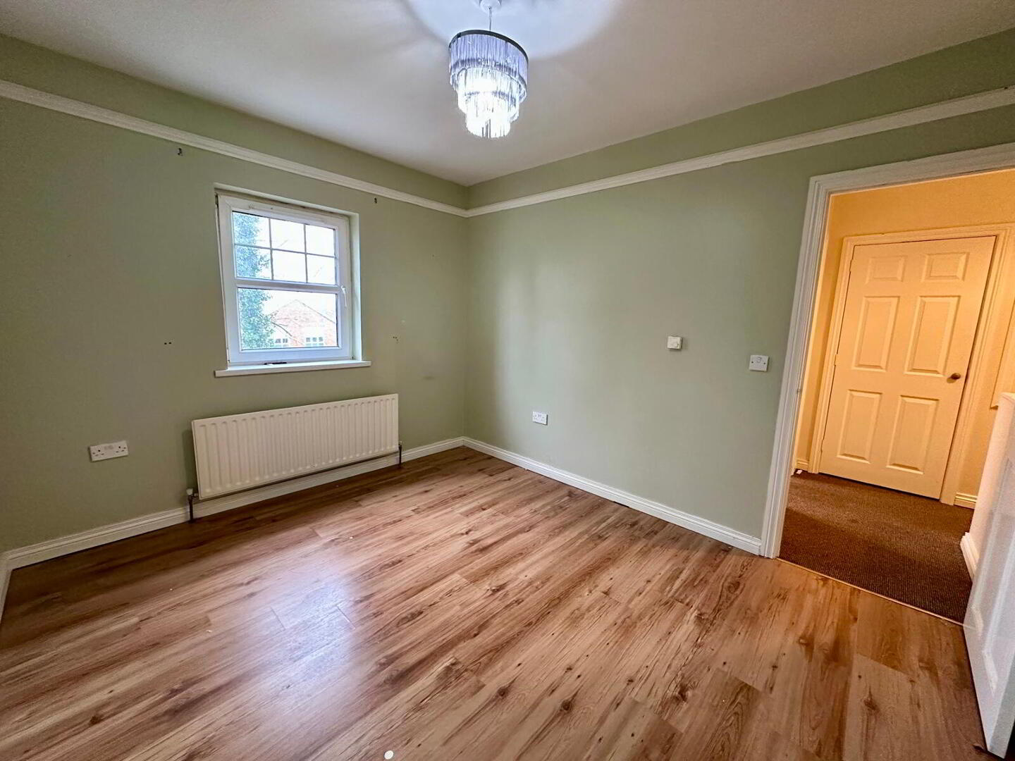Laminate flooring, fire place with granite hearth and surround, double panel radiator, double French doors leading to kitchen/dining room.