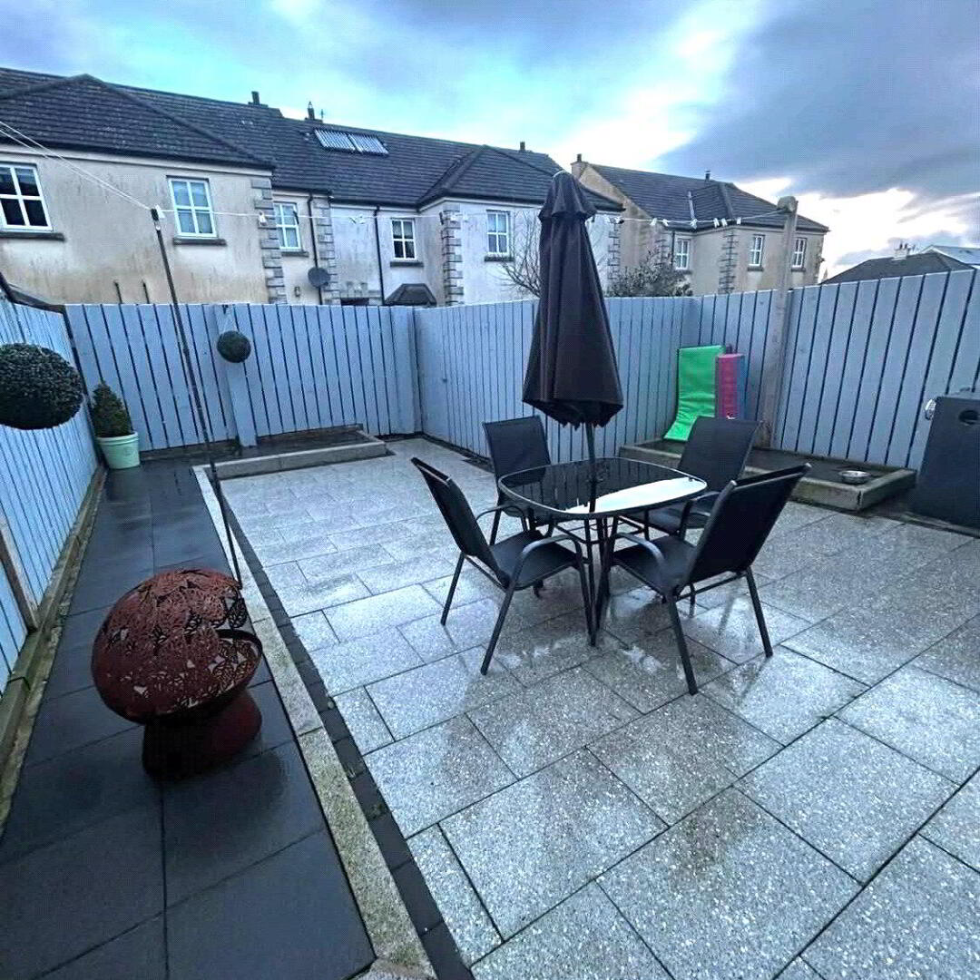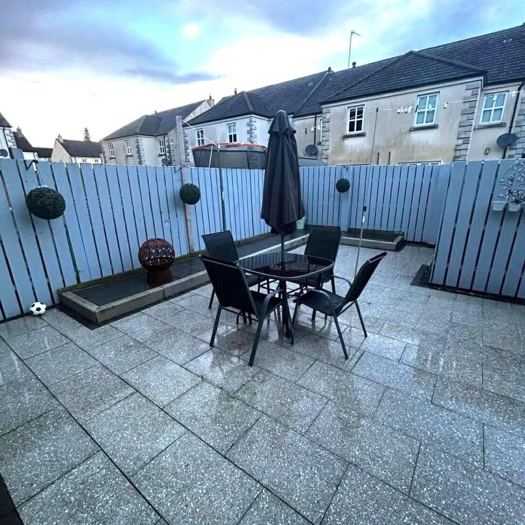 Additional features include PVC double glazing, oil-fired central heating, and an intruder alarm. Externally, the property enjoys a rear patio area with timber fencing to the boundaries, offering a private and low-maintenance outdoor space. Tarmac driveway.