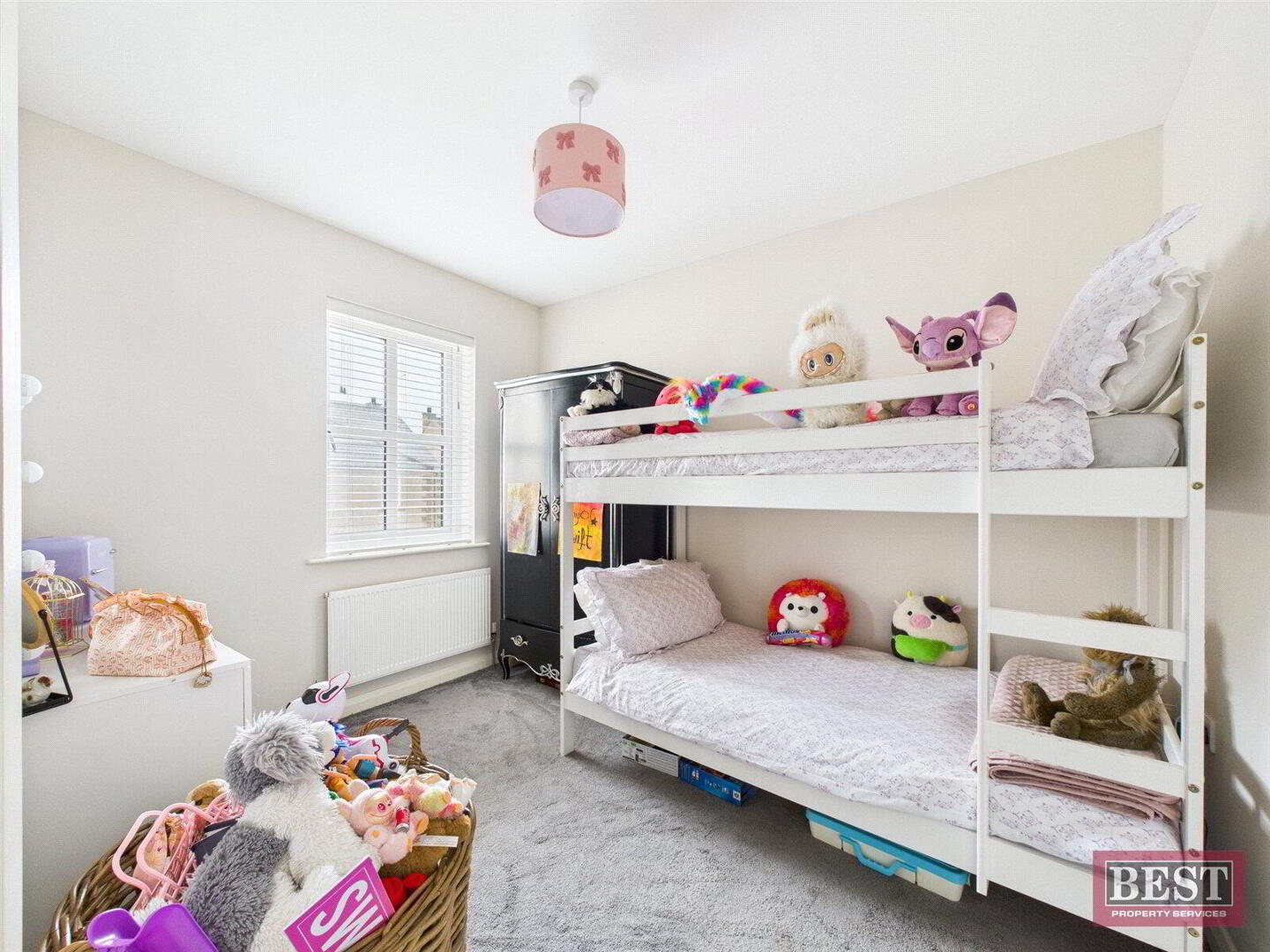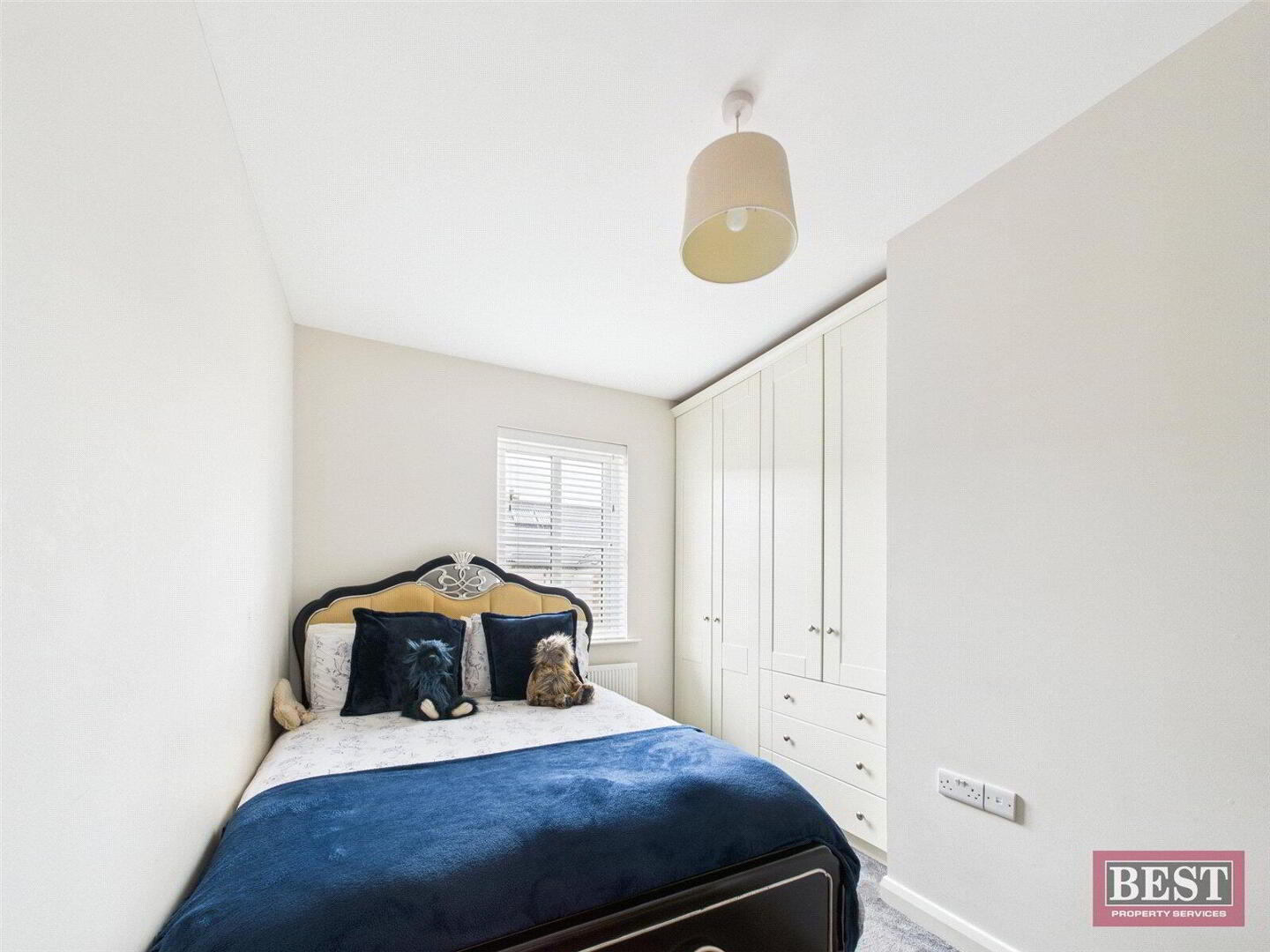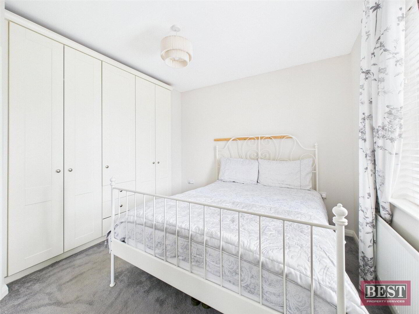 On the first floor, the landing is carpeted and includes a hot press, with access to a fully floored roof space via a Slingsby ladder, providing excellent storage.
