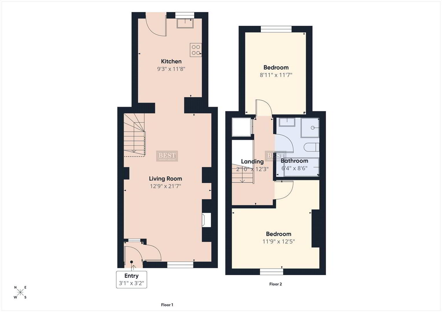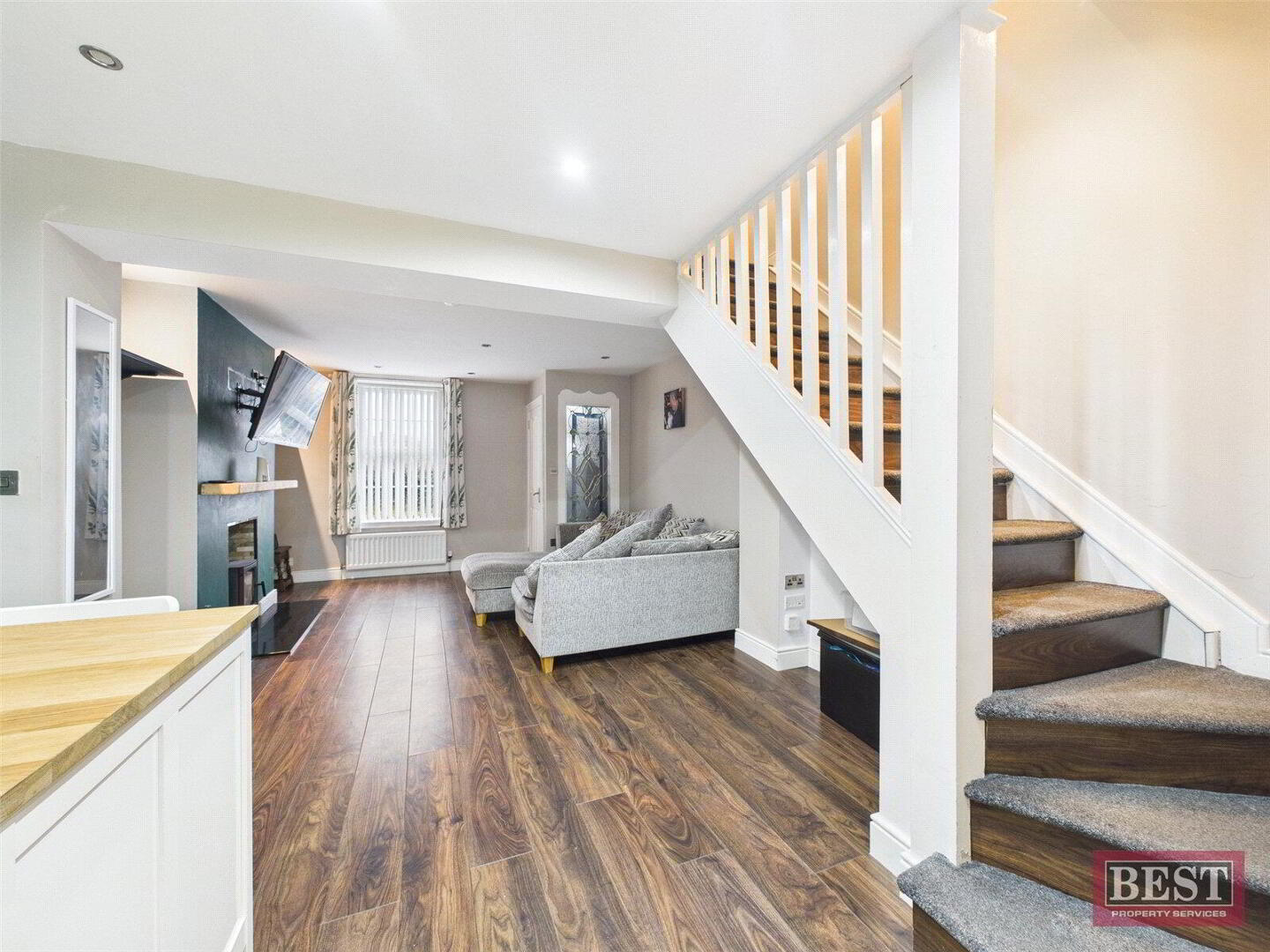 Downstairs comprises of an entrance porch, open plan spacious living room leading to the kitchen/dining area. The lounge consists of a wood burning stove with timber flooring. Kitchen/dining area has a good range of high & low-level units and integrated hob and oven with plumbing for a washing machine. On the first floor there are two well-proportioned bedrooms and a family bathroom consisting of a three piece suite with a separate fully tiled shower cubicle with electric shower.