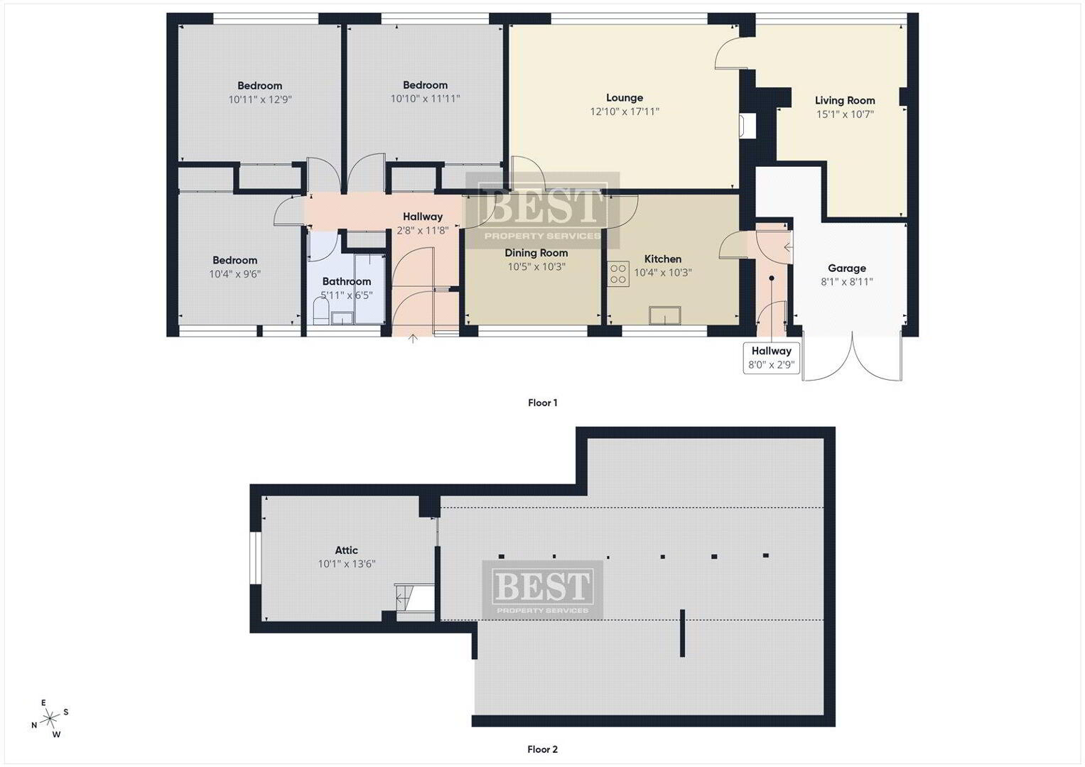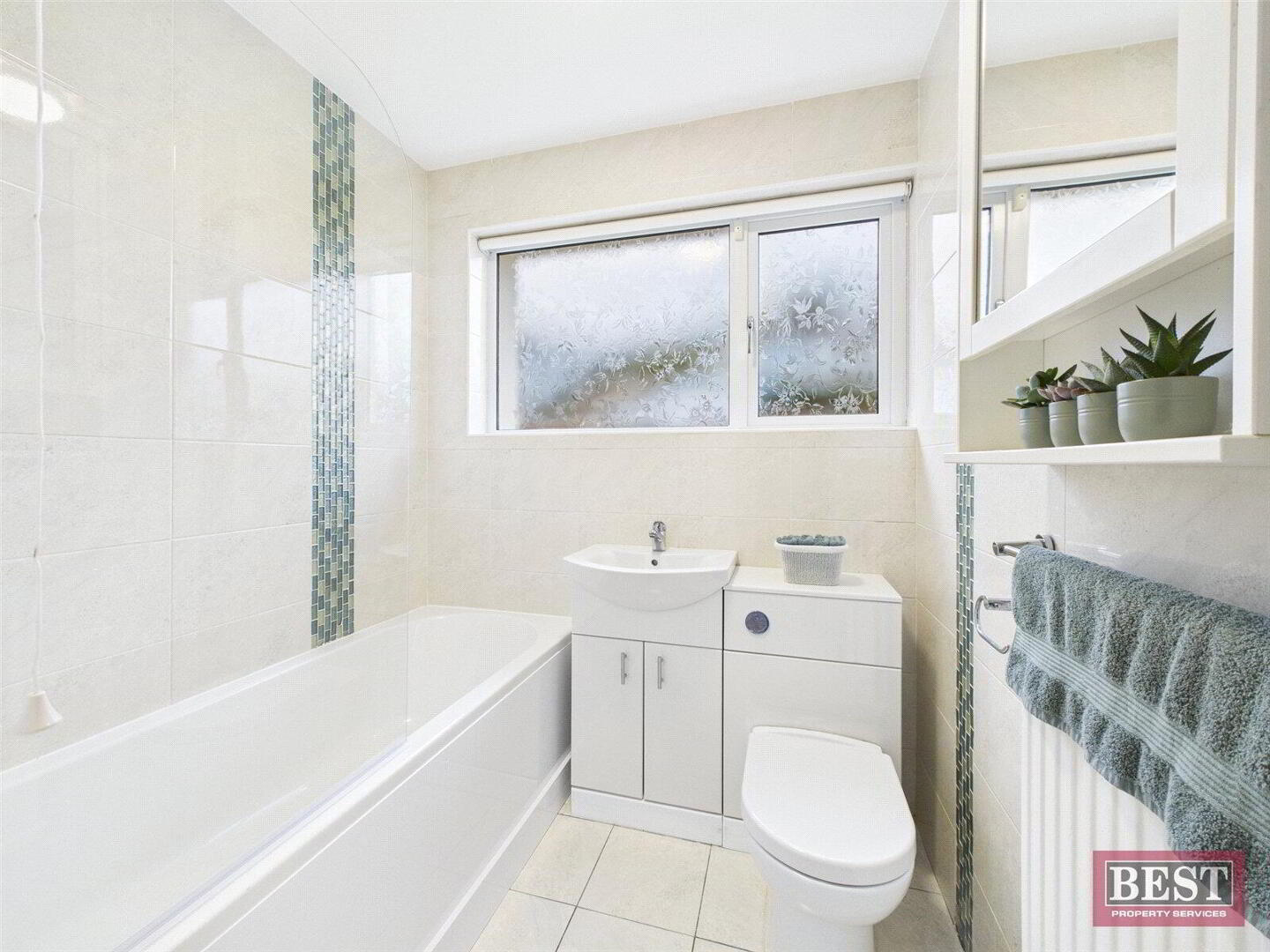 To the left of the entrance hallway are three well-proportioned bedrooms, all carpeted and benefiting from built-in storage. The fully tiled family bathroom comprises a bath with shower over, vanity wash hand basin and WC. The main hallway also offers two useful storage cupboards and access to a floored and insulated attic, providing excellent additional storage.