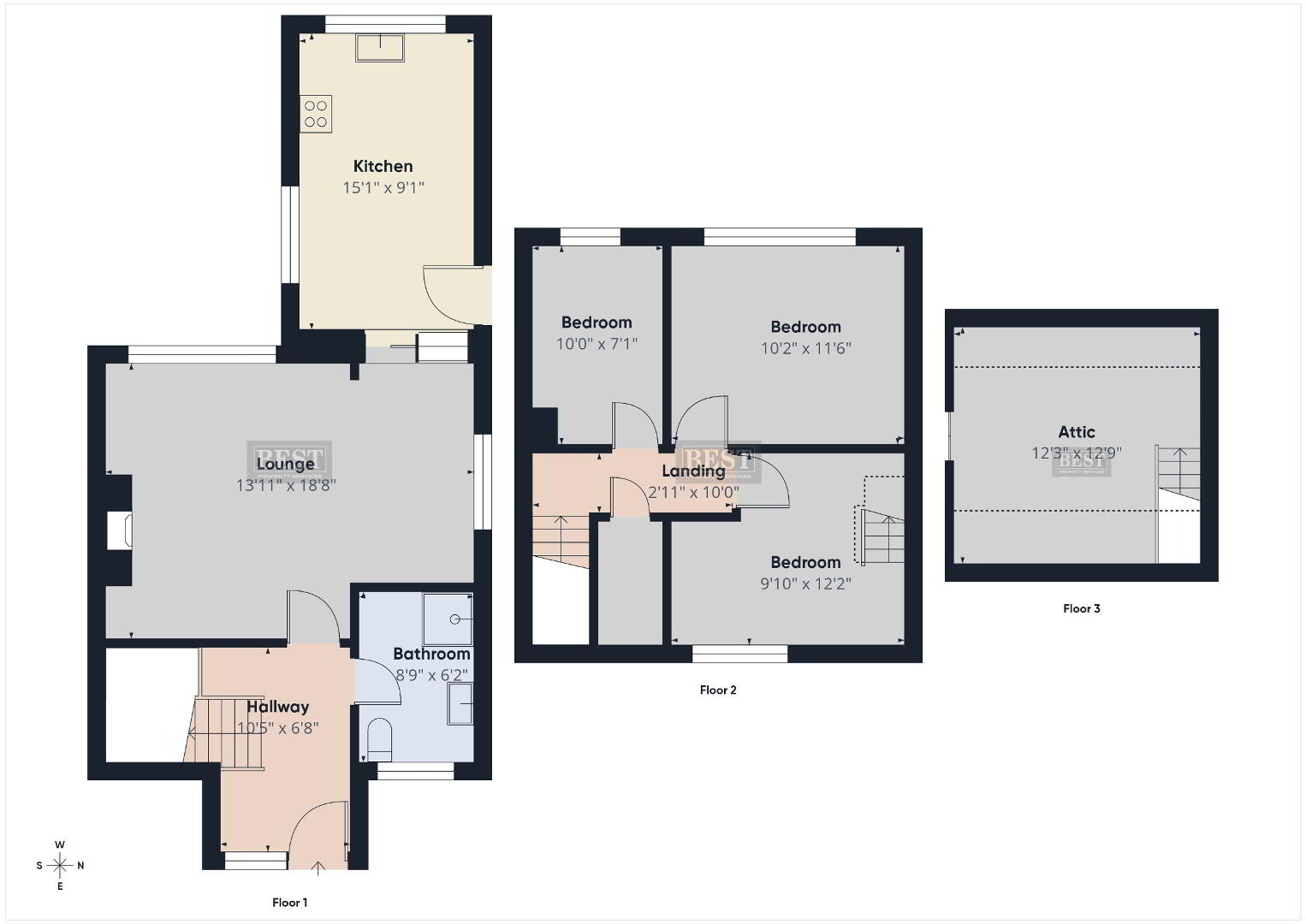 • First Floor Accommodation: Landing, Three Bedrooms, Hotpress. Access to floored roofspace.