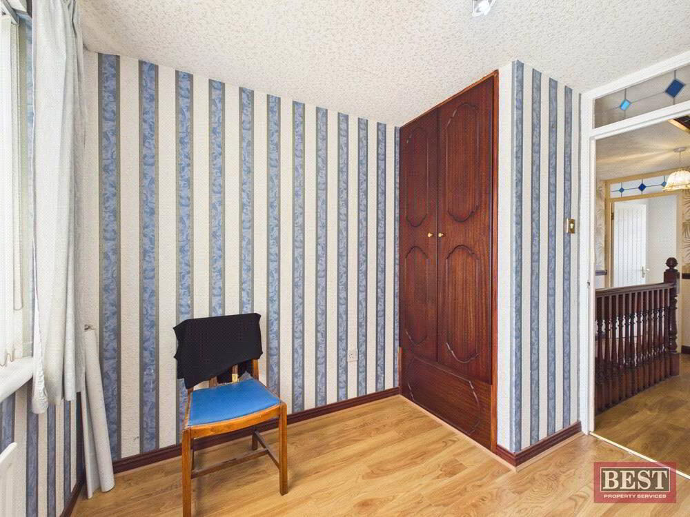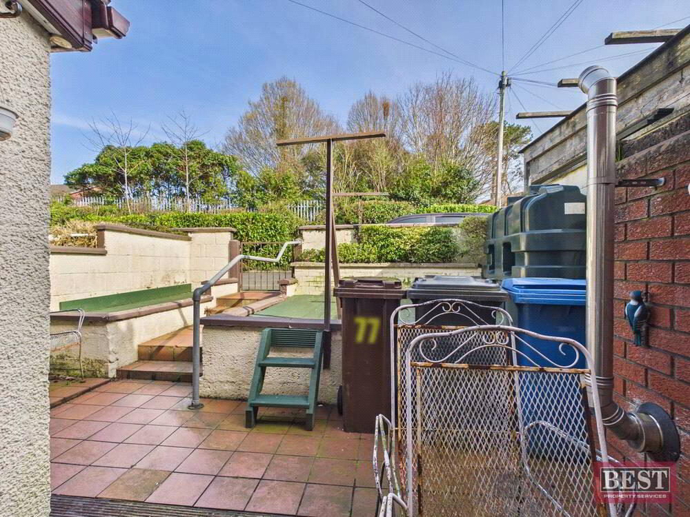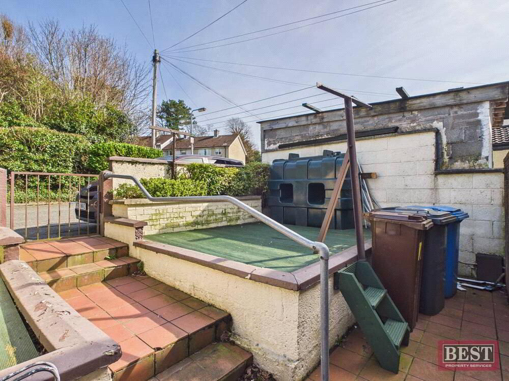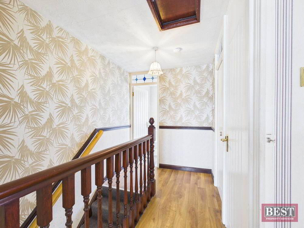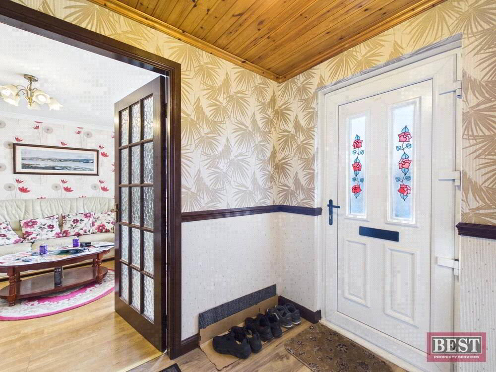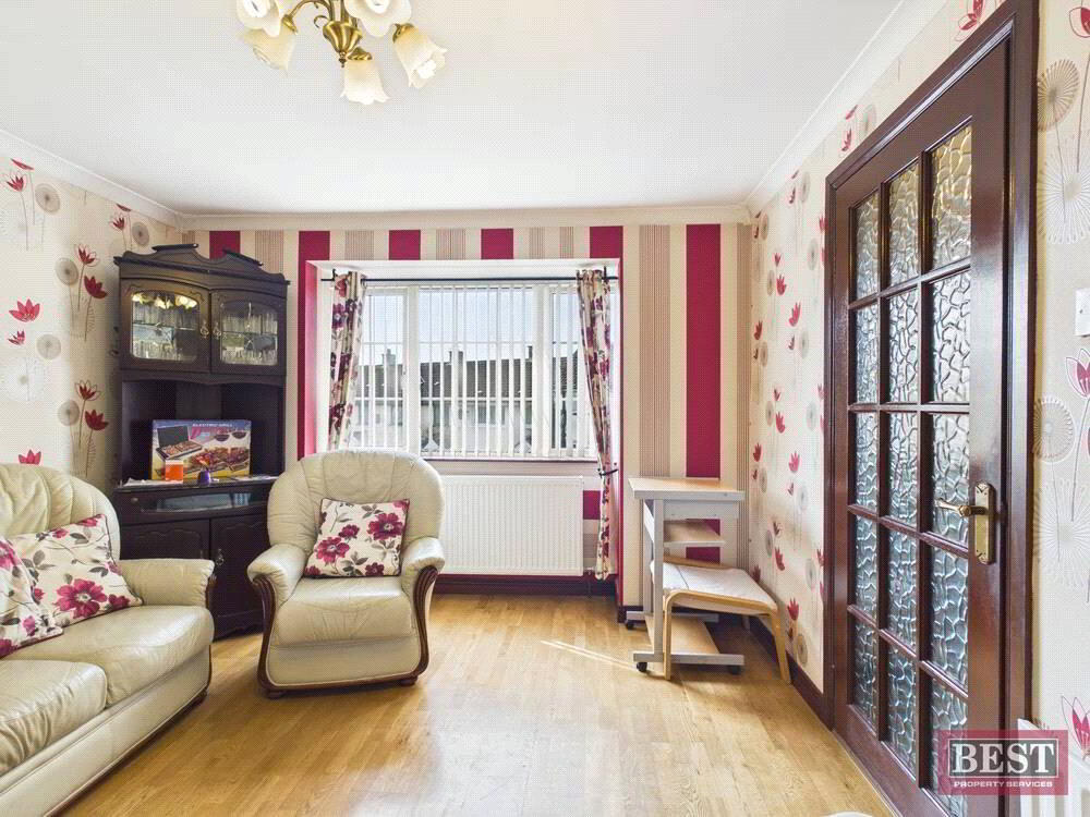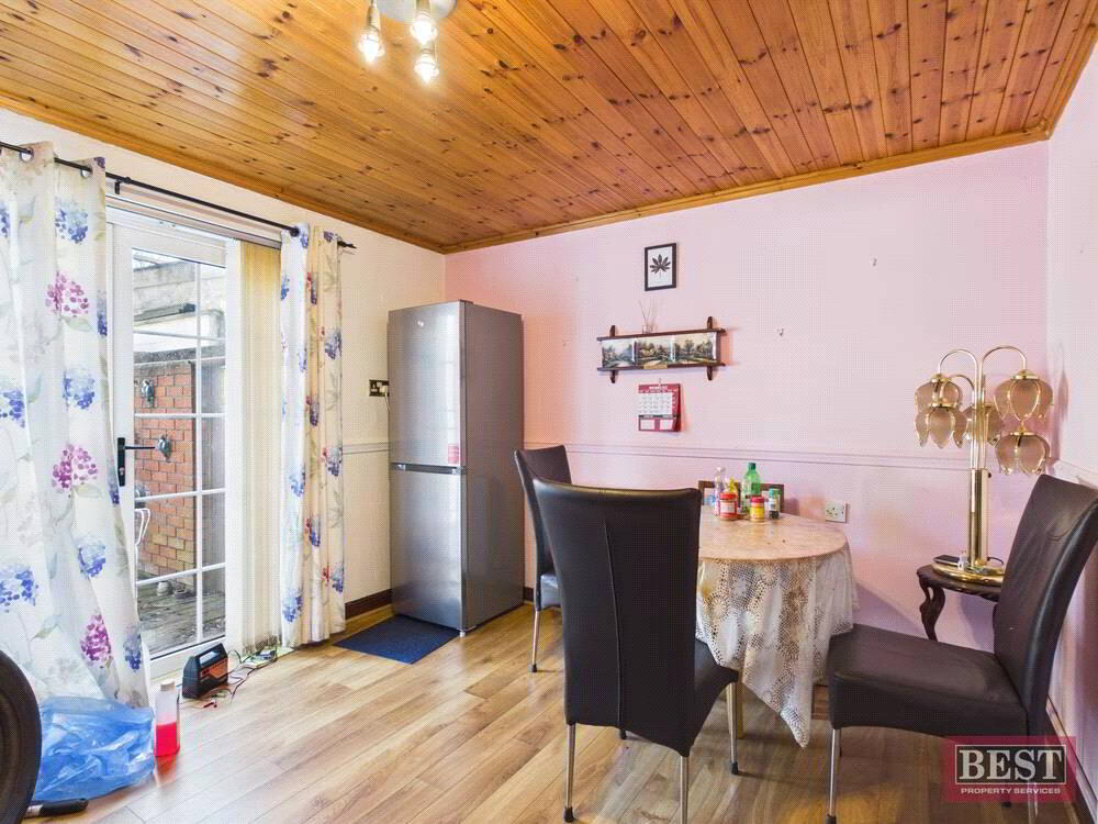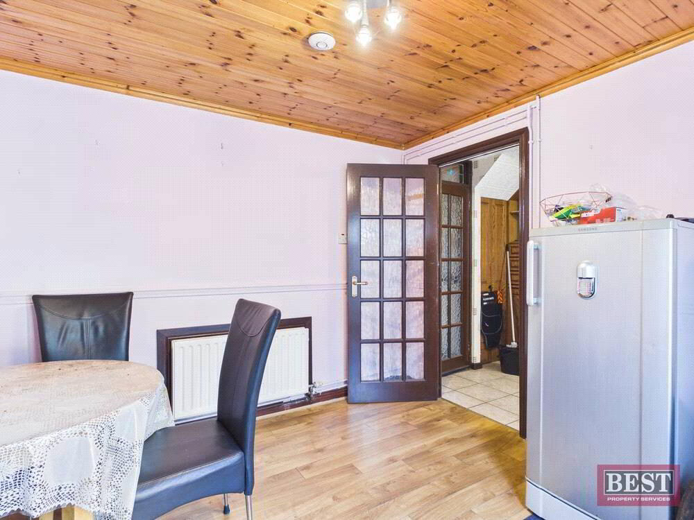 The accommodation comprises a welcoming entrance hall leading to a bright and spacious living room, complete with an open fire. The kitchen offers a full range of upper and lower units and provides access to the rear yard, with a separate dining room ideal for family meals or entertaining.