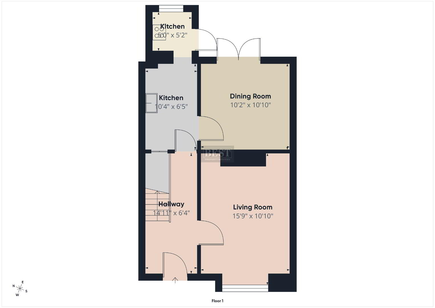 On the first floor, there is a modern shower room, two well-proportioned double bedrooms, and a comfortable single bedroom.