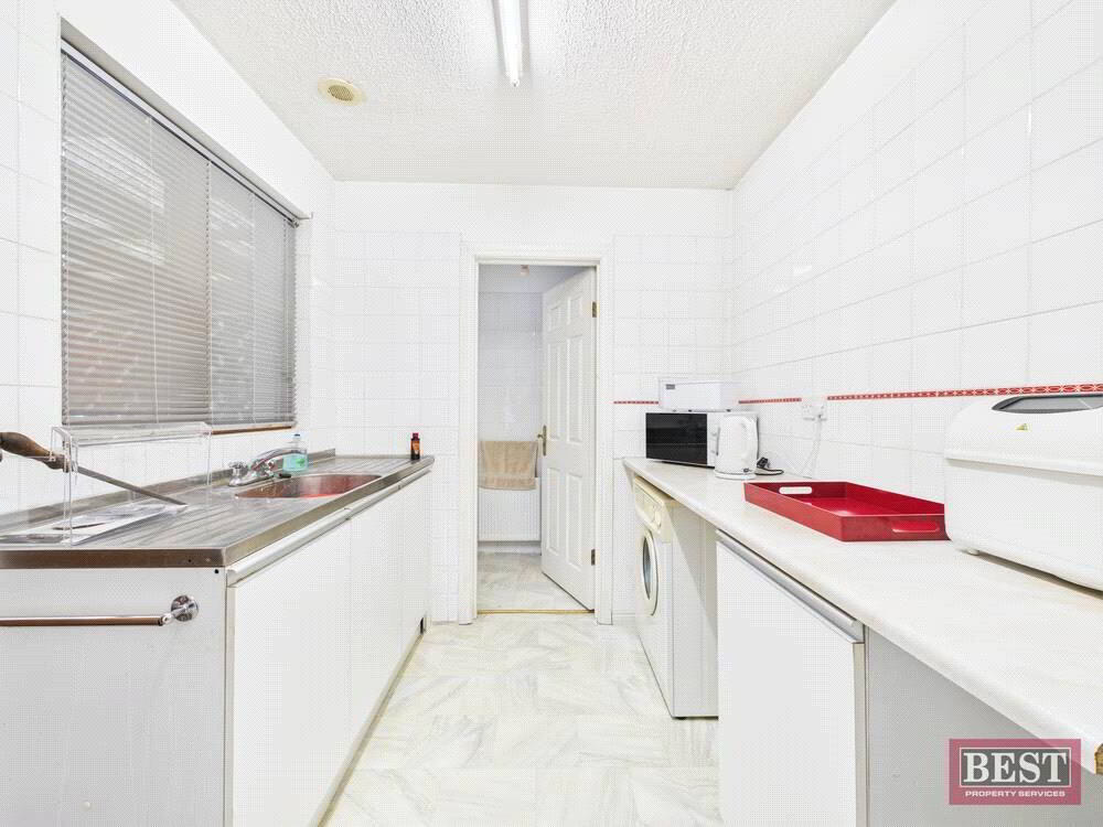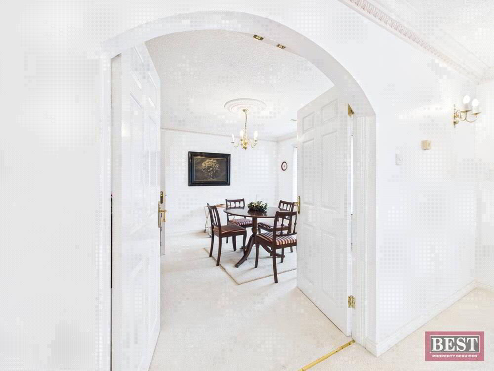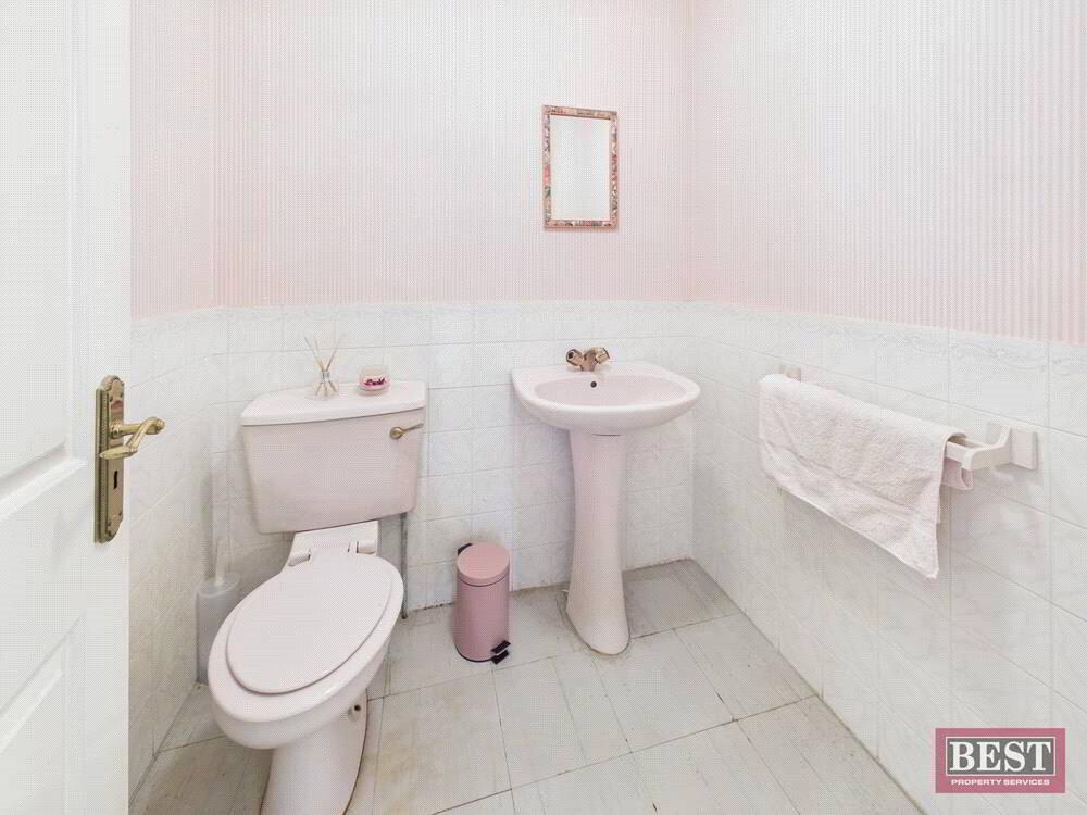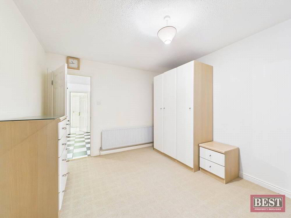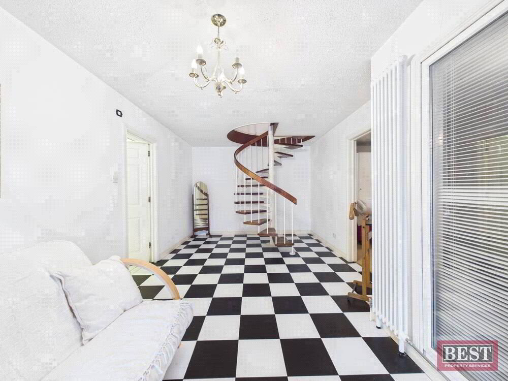 Upon entering the property, you are welcomed by a large, bright hallway. To the right sits a spacious living room filled with natural light, opening through to a well-proportioned dining room. Down the hallway you will find the family bathroom and three large double bedrooms, one of which includes a sink and shower cleverly concealed behind sliding wardrobes.